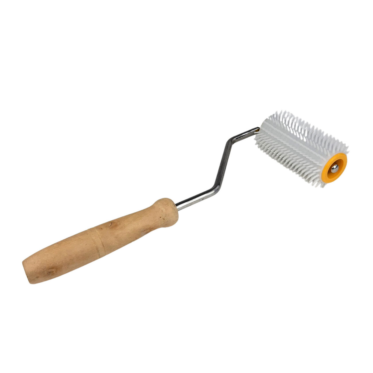 Bienenbesen mit 4 cm. langen Naturhaar- Borsten und stabilem Holzgriff, vorne geschwungen.