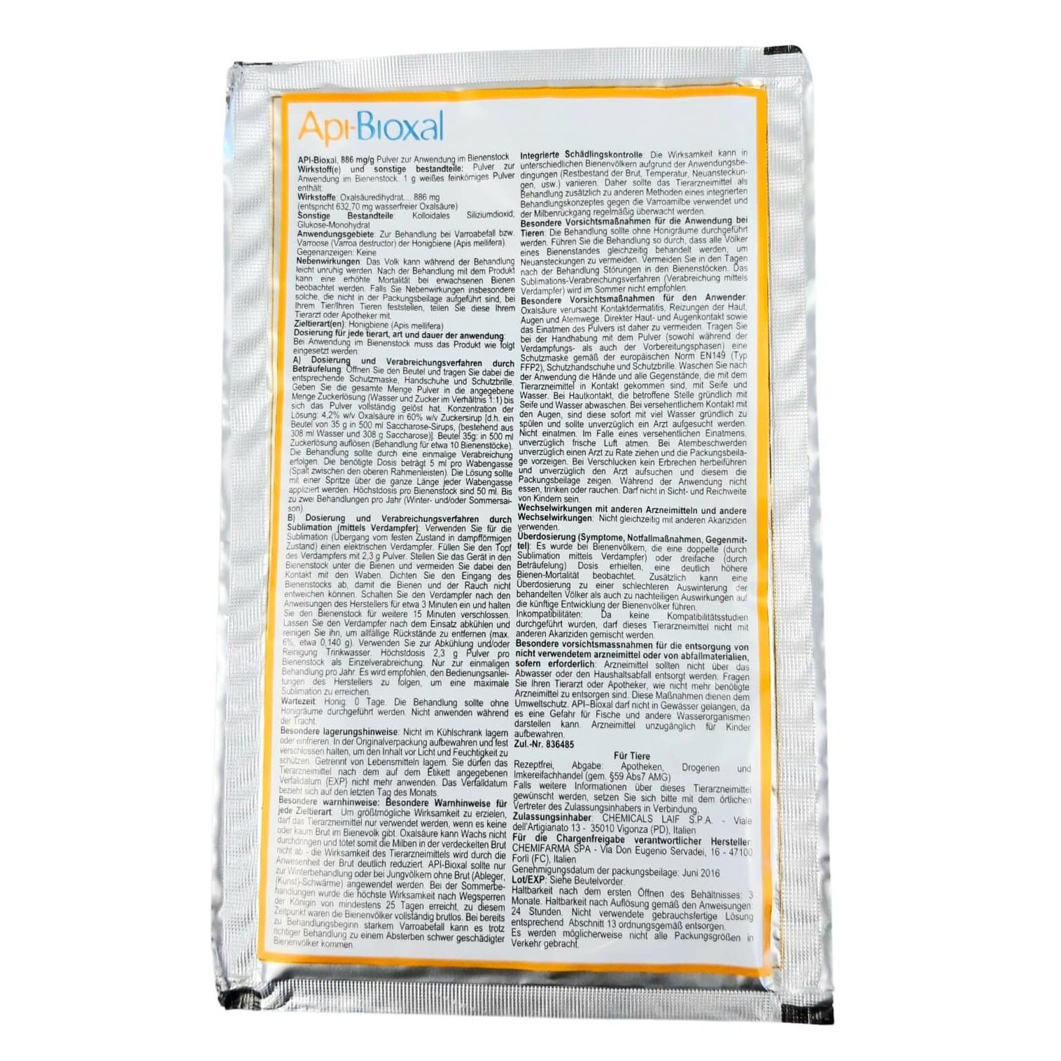 Oxalsäure- Dihydrat 35 g. Zum Verdampfen oder zur Selbstherstellung von Oxalsäure zum Träufeln. Für die Varroabehandlung zugelassen.