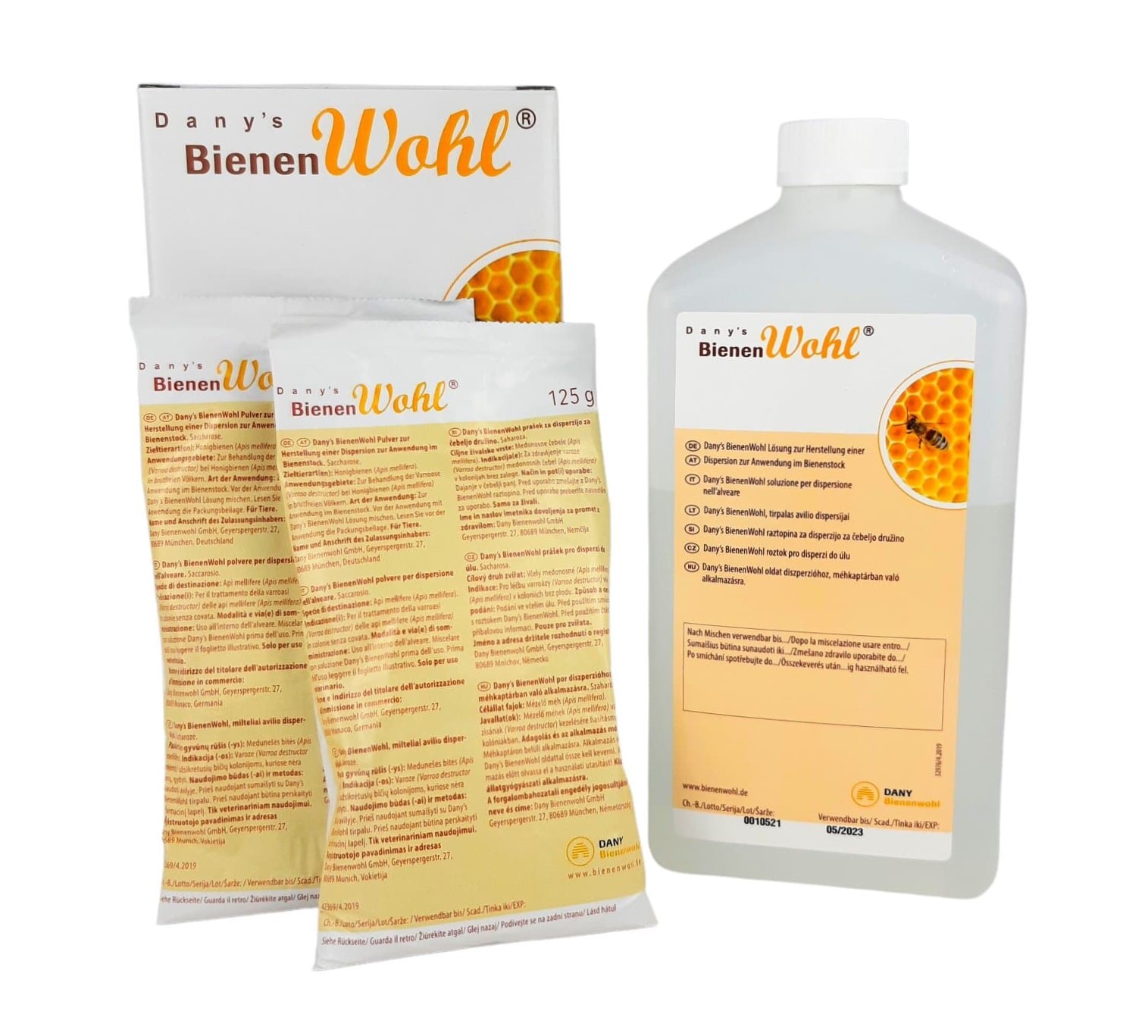 Bienenwohl 1000 g. Bienenwohl 3,5% (m/m) Oxalsäuredihydrat-Lösung, Lösung zum Träufeln für Honigbienen. Stellen Sie die Flasche mit der Lösung in handwarmes Wasser (30-35°C), und geben Sie die zwei Beutel Saccharose Pulver bei. Gut schütteln bis sich das Pulver aufgelöst hat. Fertige Lösung über die Wabengassen träufeln. Die Außentemperatur sollte nicht unter 3°C betragen. Produktbeschreibung liegt bei. Für die Varroabehandlung zugelassen.