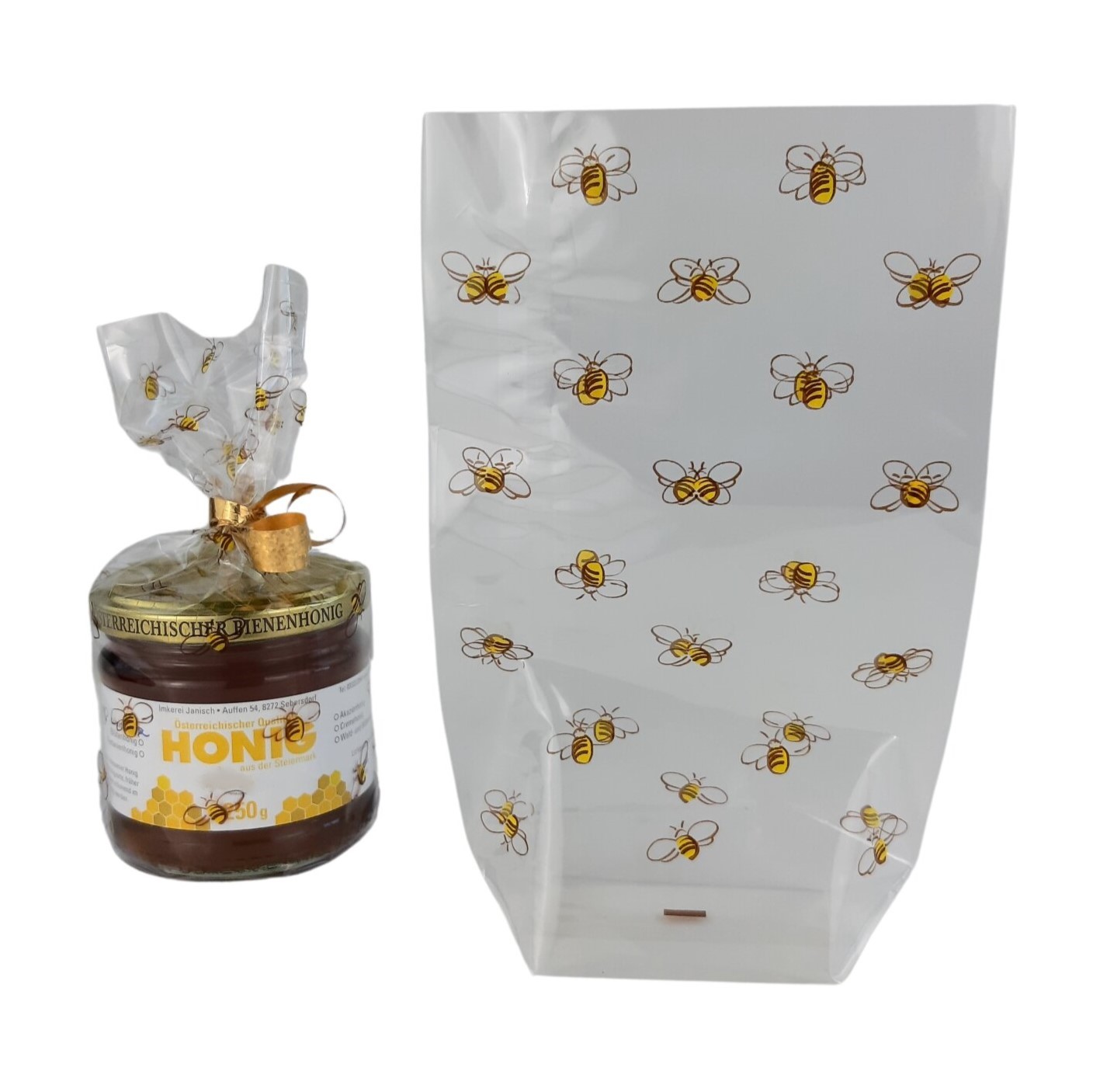 100 Stück Packung. Größe: ca. 190 x 115 mm. Für kleine Aufmerksamkeiten, z.B. ein 250 g Honigglas (nicht im Lieferumfang!).