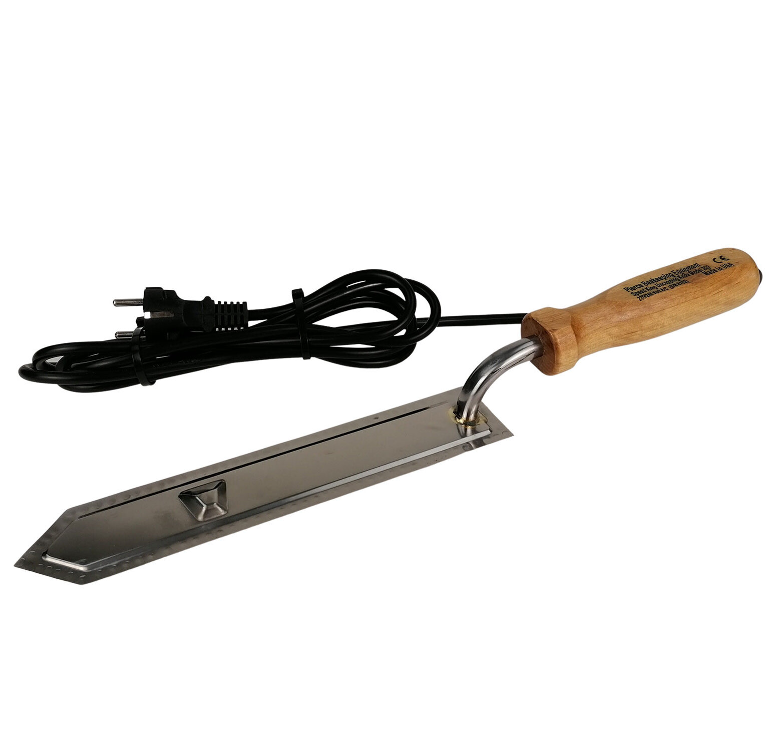 Elektrisches Entdecklungsmesser mit 25 cm langer und 5 cm breiter, beheizter Schneide. 230 V / 575 W. Durch die erwärmte Schneide lassen sich die verdeckelten Honigwaben sehr schnell und mit wenig Kraftaufwand entdeckeln. Länge des Kabels: ca. 230 cm. Made in USA.
