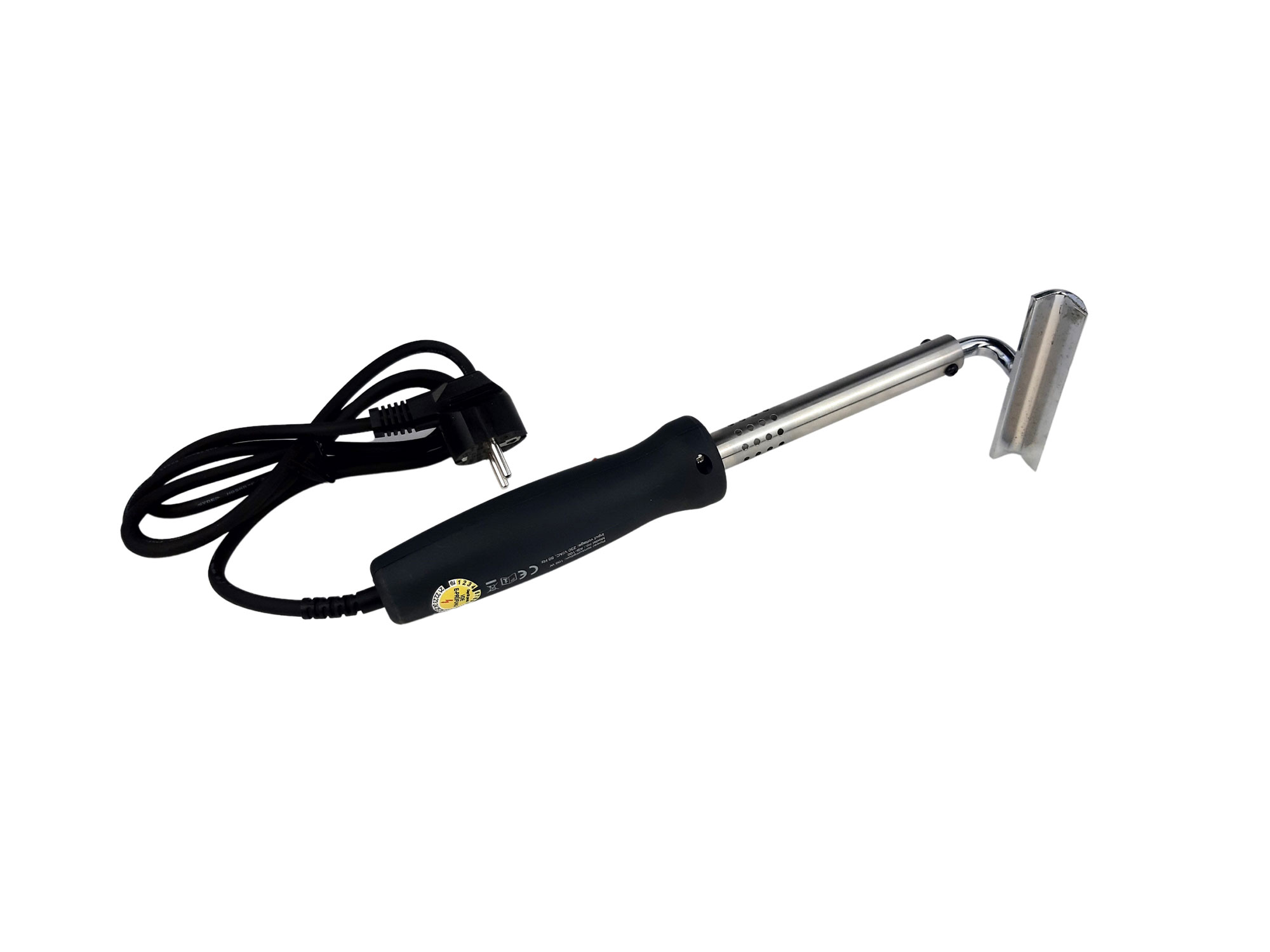 Elektro Entdeckler.  Der Unterschied zur Entdecklungsgabel liegt in der erwärmten Schneide. Dadurch kann mit weniger Kraftaufwand gearbeitet werden.220/ 230 Volt, 50 Hz, 100 Watt