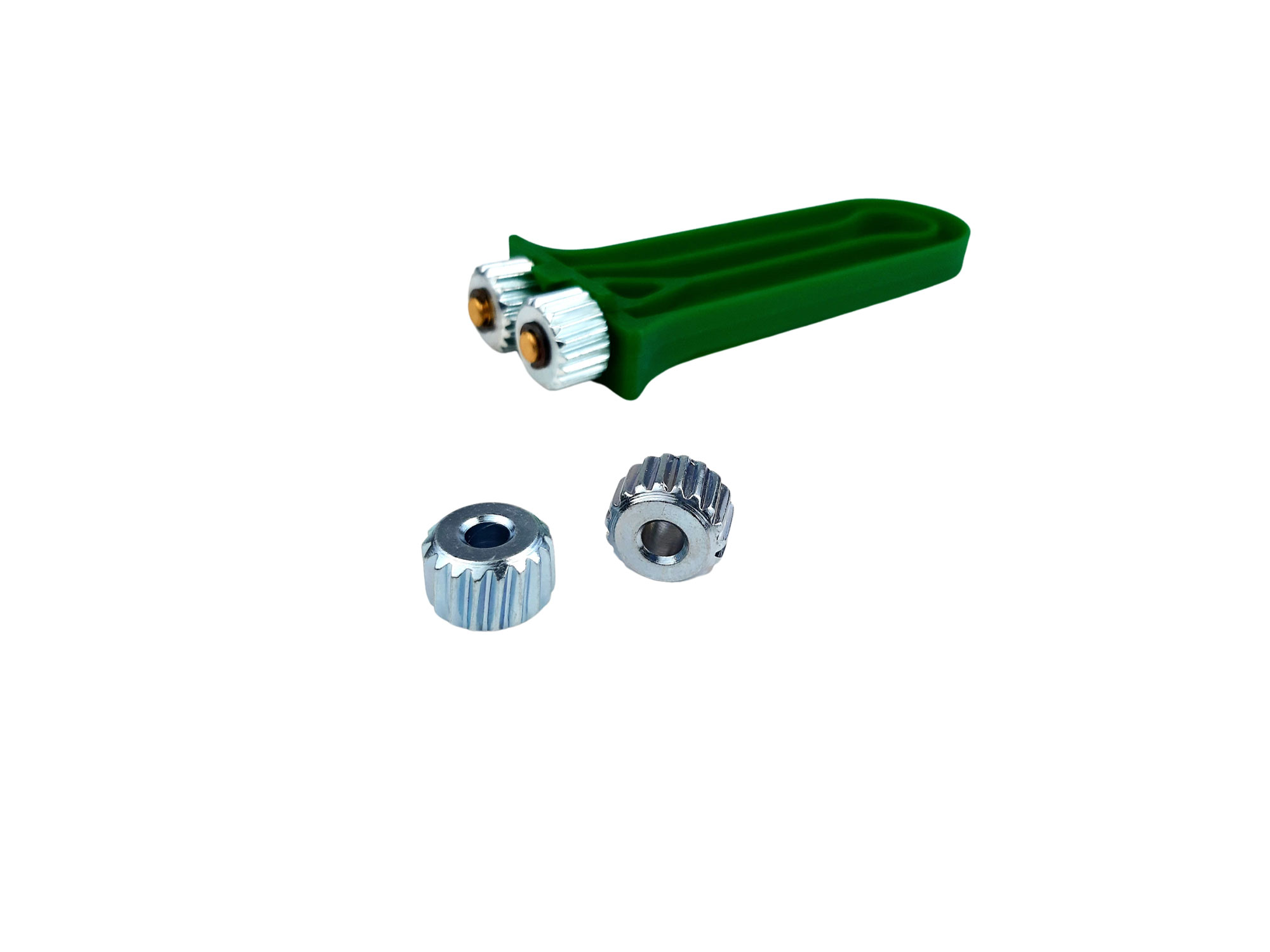 Extra gehärtete Stahlzahnrädchen. Inhalt: 2 Stück.