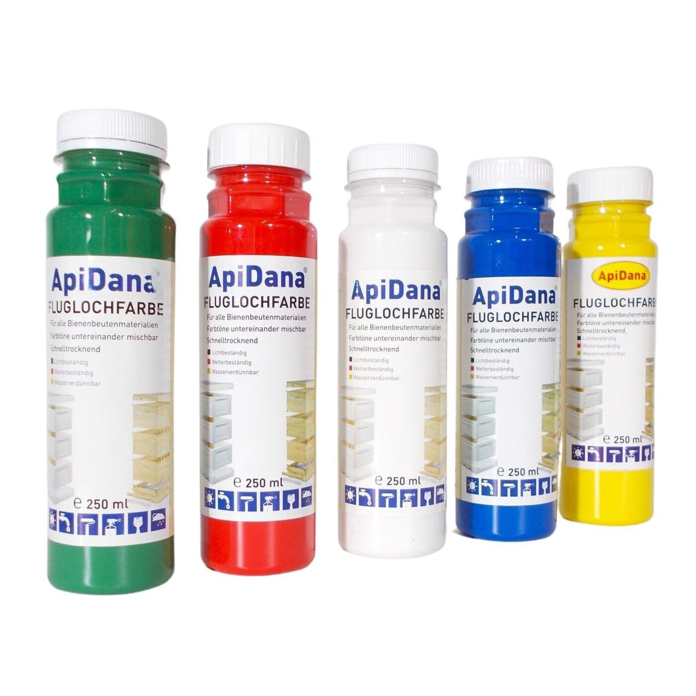 Anstrich für die Bienenwohnungen in den Farben: gelb, grün, weiß, rot oder blau. Farbtöne untereinander mischbar. Schnelltrocknend.