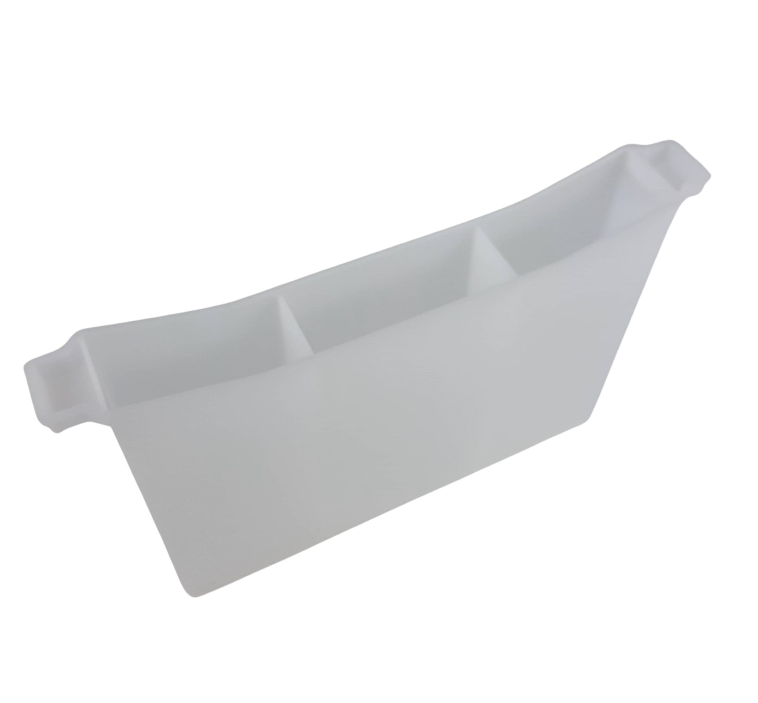 Futtertasche aus lebensmittelechtem Kunststoff, mit Kammern und geriffelten Innenwänden. 250 x 215 x 159 mm. Breite: 35 mm.