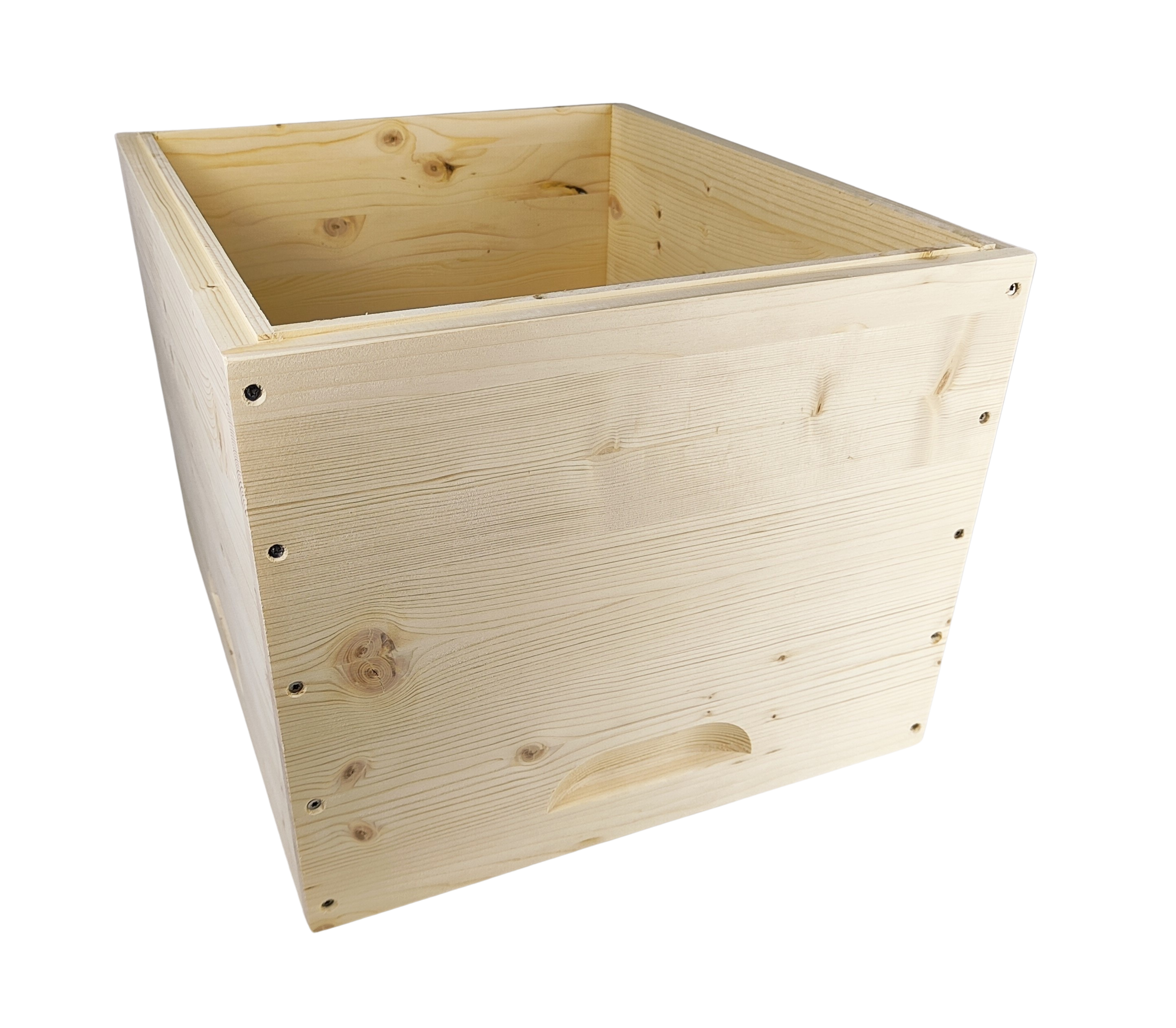 Jumbo Zarge aus 24 mm Fichtenholz, wasserfest stabverleimt und geschliffen. Eckverbindung in überfälzter Ausführung d. h. vorgebohrt, vollflächig verleimt (wasserfest) und mit Edelstahl Schrauben verschraubt. Oben auf der Innenseite befindet sich rundherum ein 14 mm tiefer Rähmchen Auflagefalz, sowie auf der Unterseite ein 3 mm Rutschfalz. Mit Griffmuldeneinfräsungen auf jeder Seite. Passende Rähmchen: 457 x 420 x 326 mm.