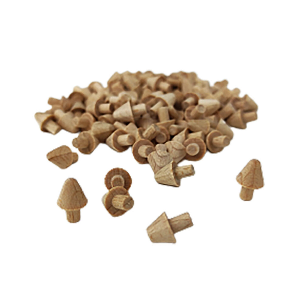 Pilzköpfe- Abstände aus Hartholz, 7 mm. Vorbohren mit einem 3,5 mm. Bohrer.