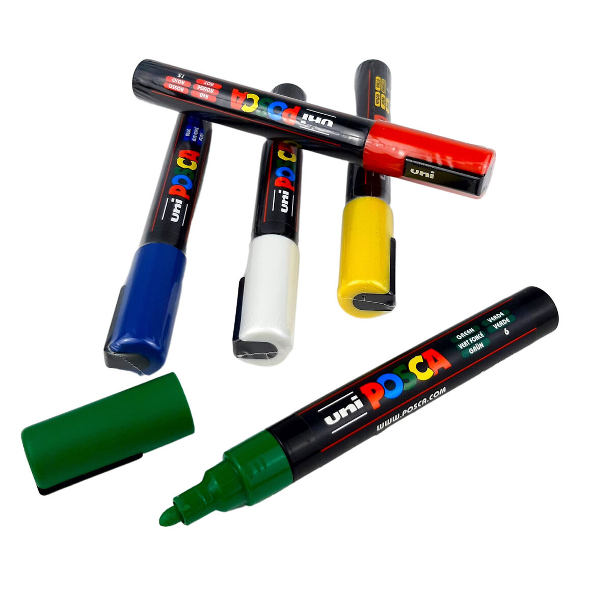 Posca Zeichenstift; in den Jahresfarben, zum Markieren und Erkennen. Rot 2023, Grün 2024, Blau 2025, Weiß 2026, Gelb 2027.