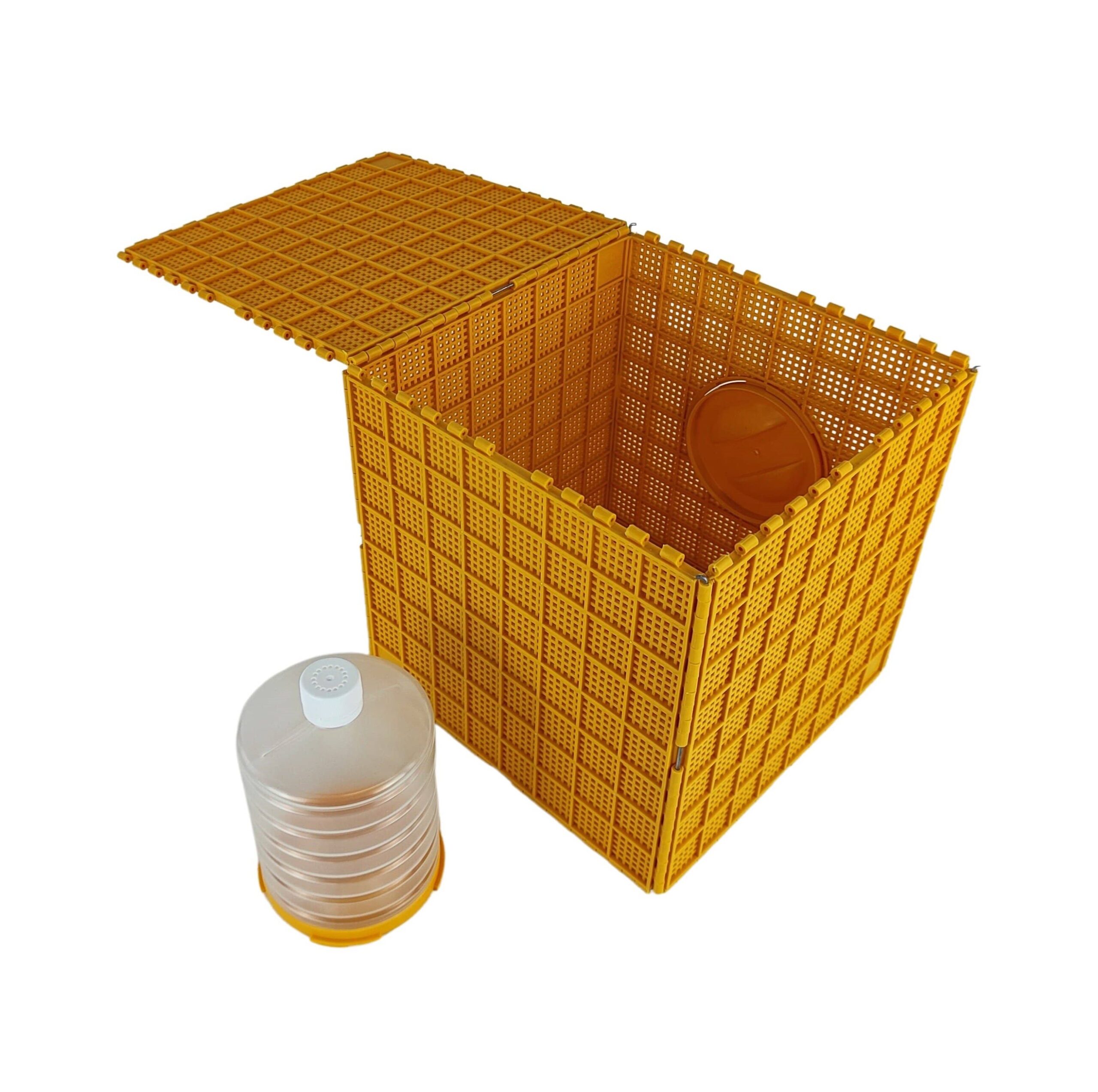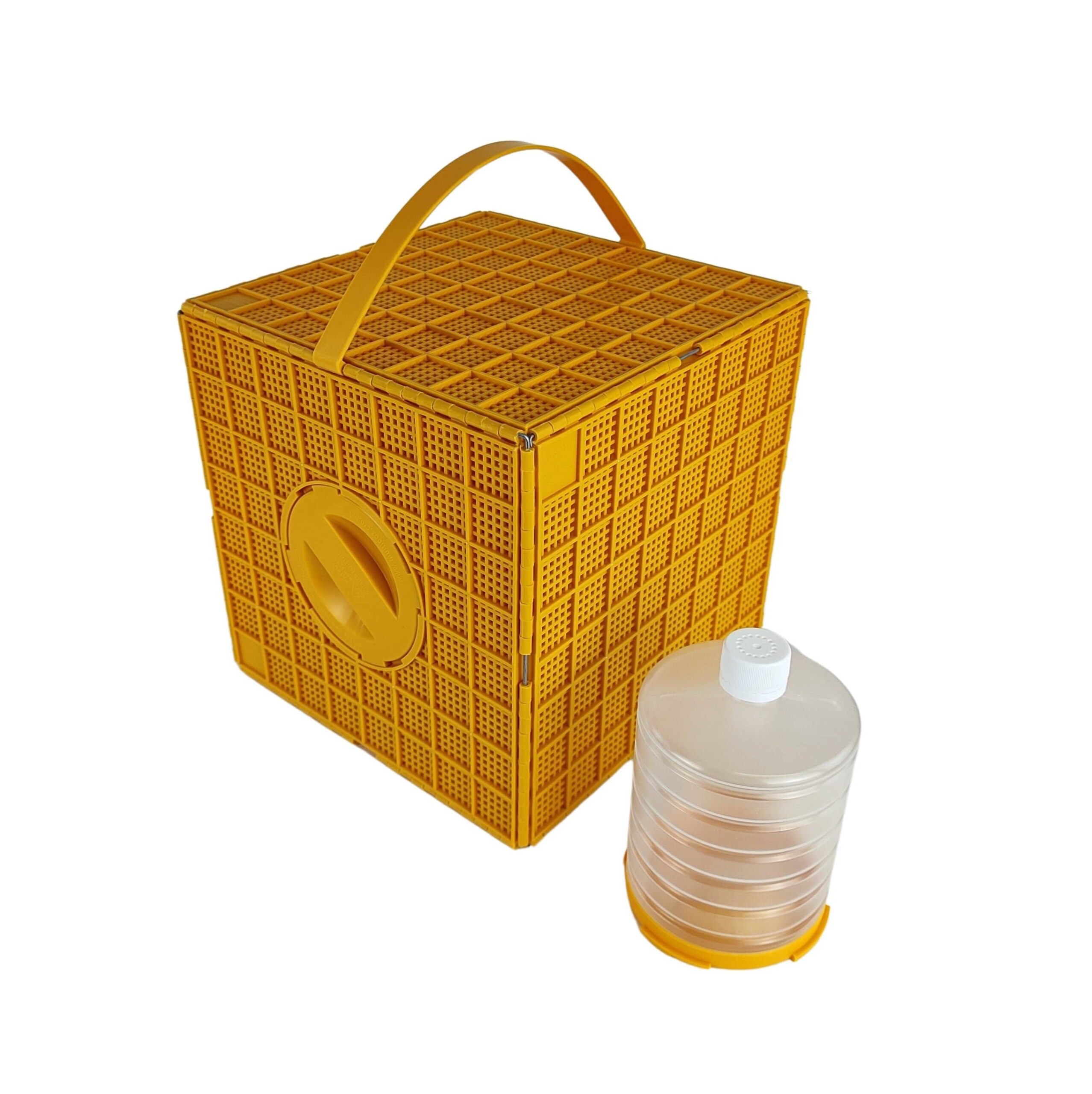 Für einen Bienenschwarm oder zum Bienentransport. Mit Tränke und Griff. Wird in Teilen geliefert- einfach Zusammenstecken und fertig.