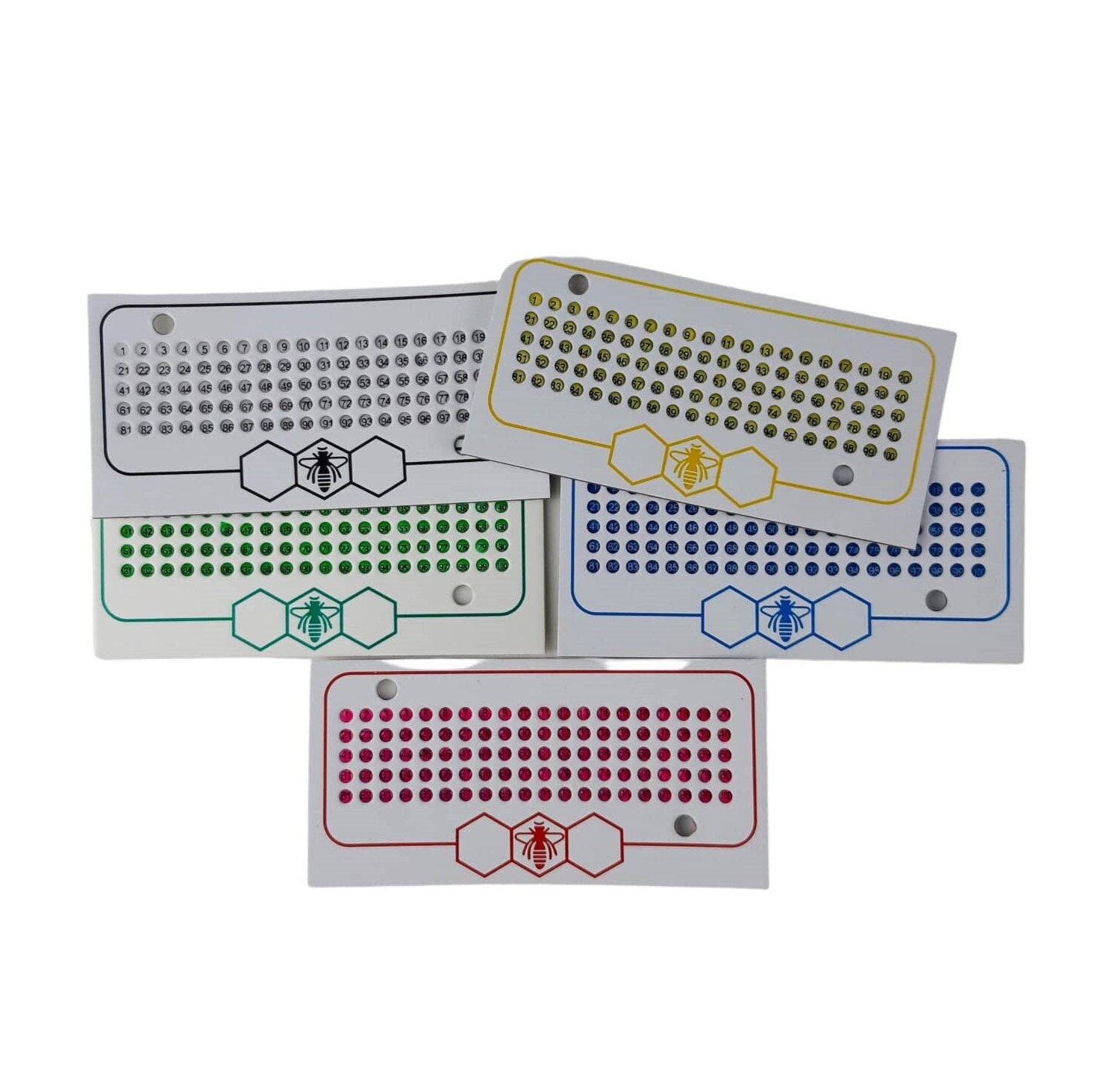 Leucht Opalith Zeichenplättchen mit Nummern. Karte mit Nummernplättchen von 1 – 100. Farben wählbar: Weiß, Gelb, Grün, Blau oder Rot